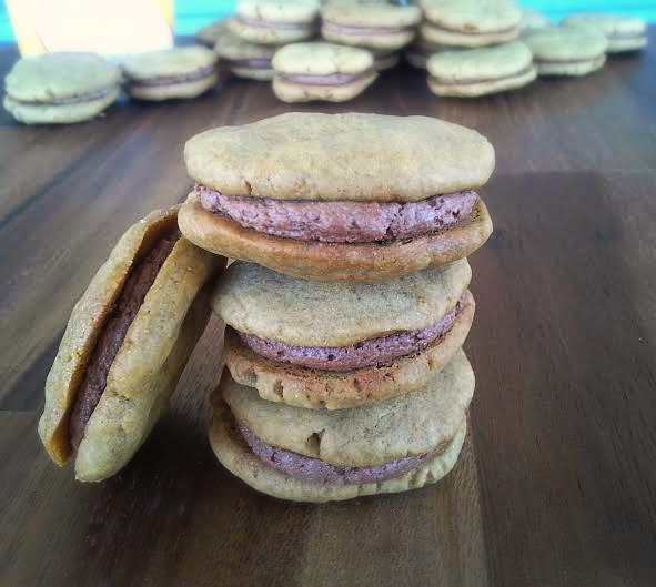 To fill, place 1 1/2 teaspoons frosting in the middle of one cookie, then top with the second cookie, pressing down gently to secure. Repeat until all cookies have been sandwiched together. Makes 2 1/2 dozen sandwich cookies.