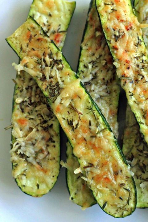 Mix cheese and herbs together in a small bowl and sprinkle over the zucchini along with salt and pepper to taste.