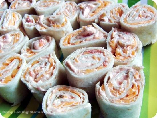 Tightly roll tortillas and cut each crosswise into 5 slices.