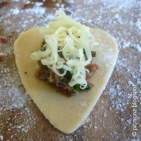 Fill the pasta by adding approximately teaspoon amounts of the filling mixture to the centre of a piece of pasta, top with a pinch of mozzarella. Take another piece of pasta, brush the edges with egg + water and seal over top of the filled piece, use a fork to press the edges of the two pieces together. Repeat this until all the pasta is filled. Cook the pasta in a large saucepan of boiling, salted water for about 4 minutes, stirring so that it doesn't stick. Removing from the pot using a slotted spoon.