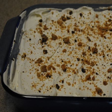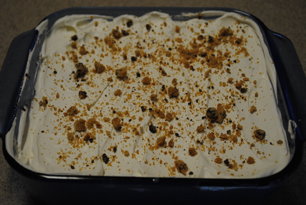 Repeat steps 2 &; 3 (saving a few cookies) end on a final layer of cool whip