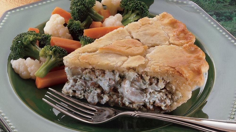 Classic stroganoff gets a twist when prepared in a pastry shell with a crown of crisp pastry cutouts on top.