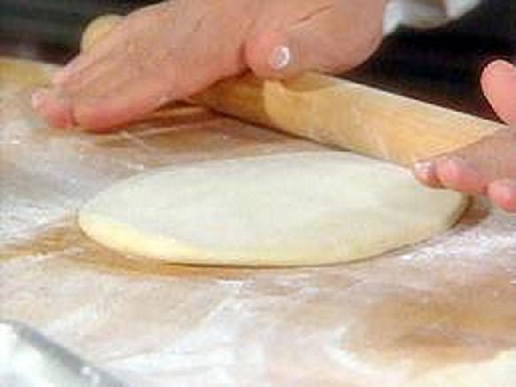 Spread on greased pizza pan and top with sauce and desired toppings and bake 20 minutes in 450 degree oven.