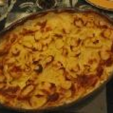 Spicy potatoes o gratin Potato gratin with bacon and ham