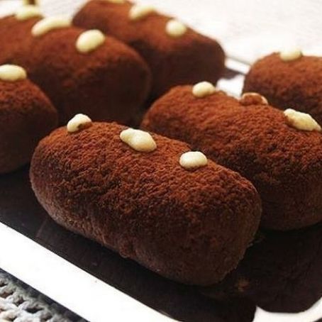 5. Finished cakes sprinkled with remaining cocoa powder.