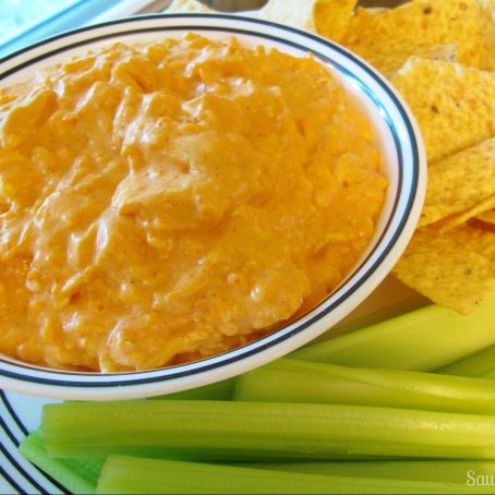 In medium sauce pan, add cream cheese, hot sauce, dressing, chicken and celery. Mix to simmer.