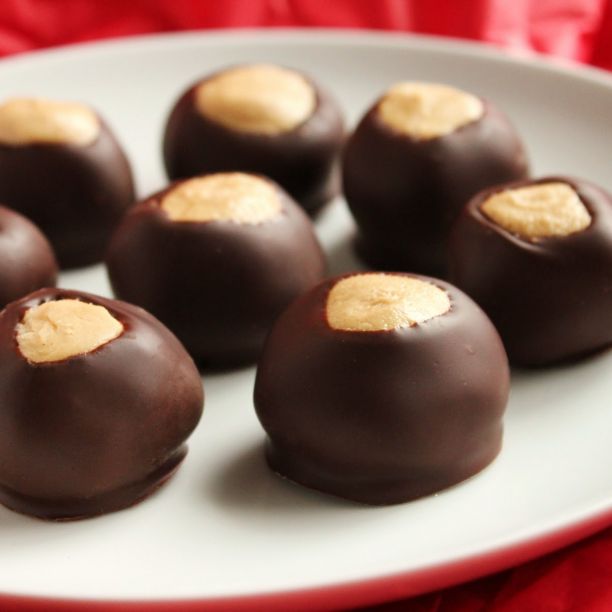 Remove balls from refrigerator. Insert a wooden toothpick into a ball, and dip into melted chocolate. Return to wax paper, chocolate side down, and remove toothpick. Repeat with remaining balls. Refrigerate for 30 minutes to set.