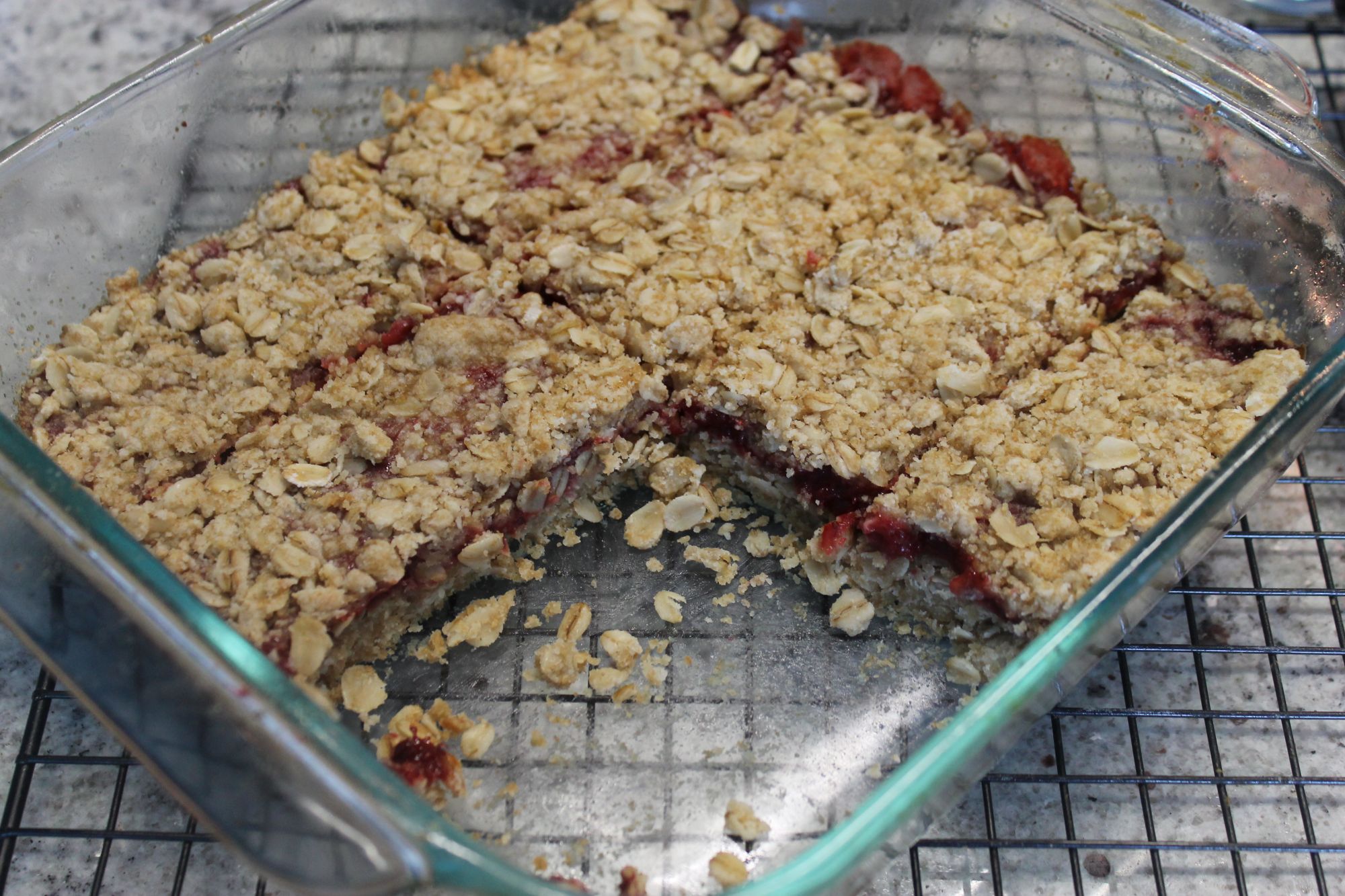 Pour mixture into prepared pan and smooth out. Bake for 35-40 minutes until lightly golden along edge and it springs back slowly when touched. I baked them for 40 minutes, but baking time may vary. Place pan on cooling rack for 10 minutes, carefully remove, and cool on rack before slicing.