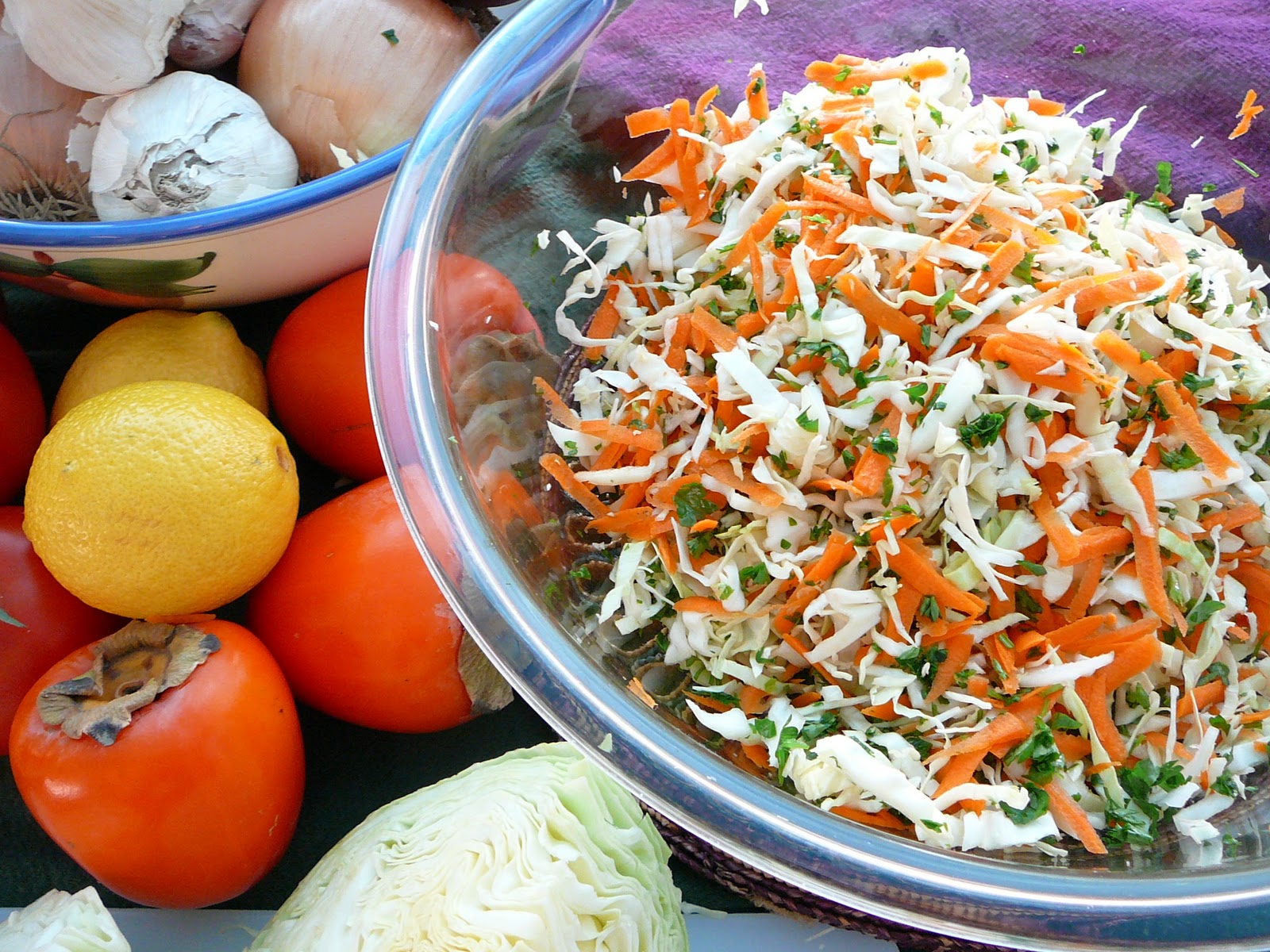 Place cabbage and carrots in a colander; rinse thoroughly with cold water to crisp. Let drain for 5 minutes.
