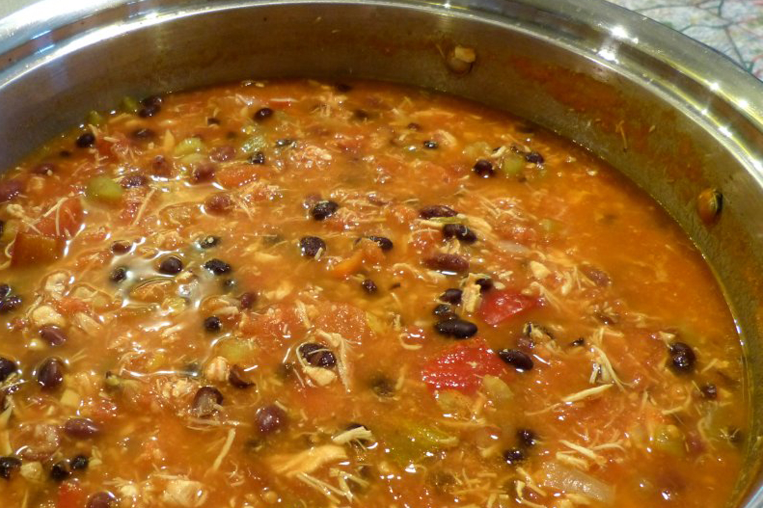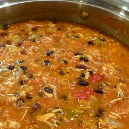 3. Add the remaining ingredients to the pot. Bring mixture to a boil, reduce and simmer for 4-5 hours. Stir often so chicken shreds smaller. Chili will reduce to thicken and darken ( brown) when done.