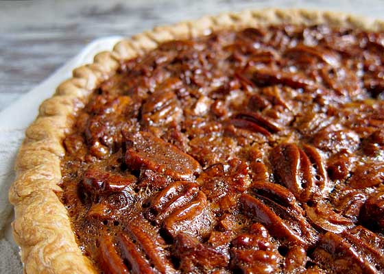 In a large bowl combine eggs, bourbon, vanilla, and salt. Mix well. Slowly pour sugar mixture into egg mixture, whisking constantly. Stir in chocolate chips and pecans. Pour mixture into pie shell.