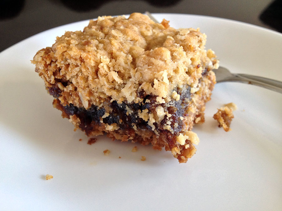 In a large bowl, combine oats, pastry flour, salt, 1 cup brown sugar, and baking soda. Mix in the butter until crumbly. Press half of the mixture into the bottom of a 9 inch square baking pan.