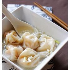 in soup pot place chicken broth, beef broth, salt, other half of green onions, and other half of pepper until warm about 5 minutes. place in won ton noodles and cook for another 25 minutes.