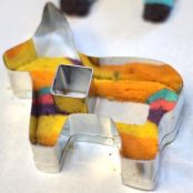 Use a container the same approximate width of your cookie cutter, and line it with plastic food wrap. Split all of your colored dough balls in half and begin layering the dough in the container. Alternate the colors so that you end up with two layers of each color by the time you're done.