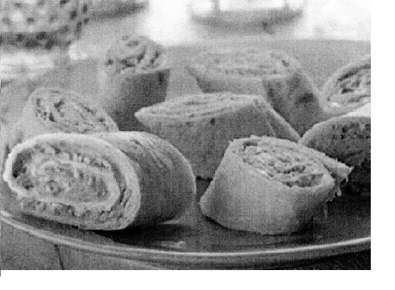 ROLL up tostillas tightly. Cut each crosswise into 5 slices.