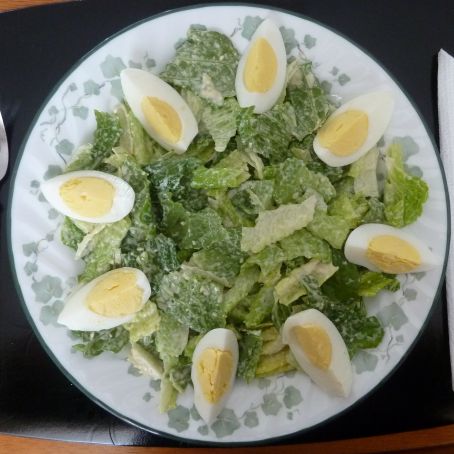If desired, add more parmesan cheese, croutons, bacon bits, chicken strips, red onion etc. Use your imagination.