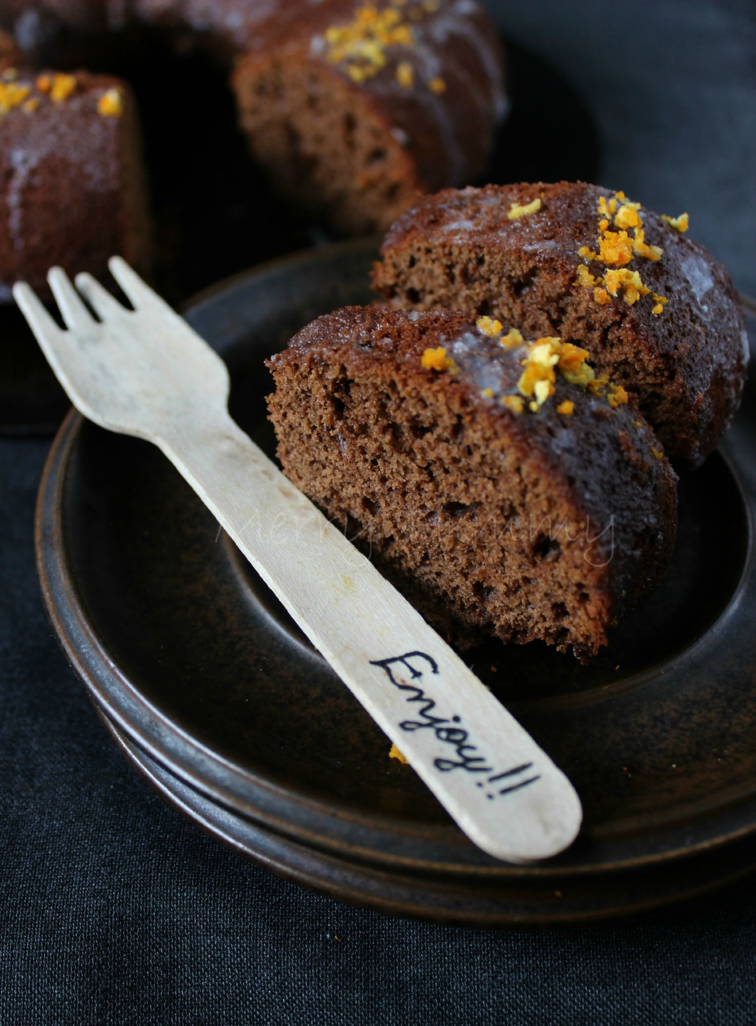 Cofee Whiskey Cake With White Chocolate Glaze And Orange Zest