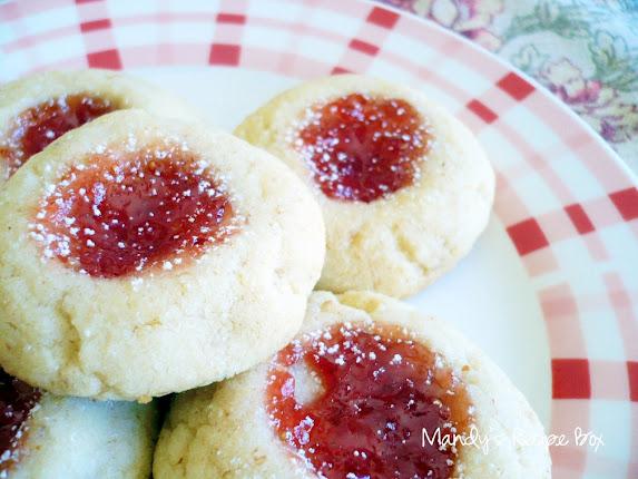 Roll into 1-in. balls. Place 2 in. apart on greased baking sheets. Using the end of a wooden spoon handle, make an indention in the center of each. Fill each with 1/4 teaspoon jam. Bake at 350 degrees for 13-15 minutes or until edges are lightly browned. Remove to wire racks. Dust warm cookies with confectioners' sugar if desired. Cool.