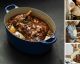 Dice onion and mince 3 cloves of garlic. Add with olive oil into large pot over medium heat and cook until onions are translucent. Add and brown stewing beef until browned on all sides.
