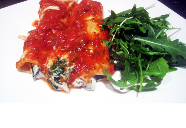 - 8 cannelloni/manicotti noodles (gluten-free as required) cooked al dente