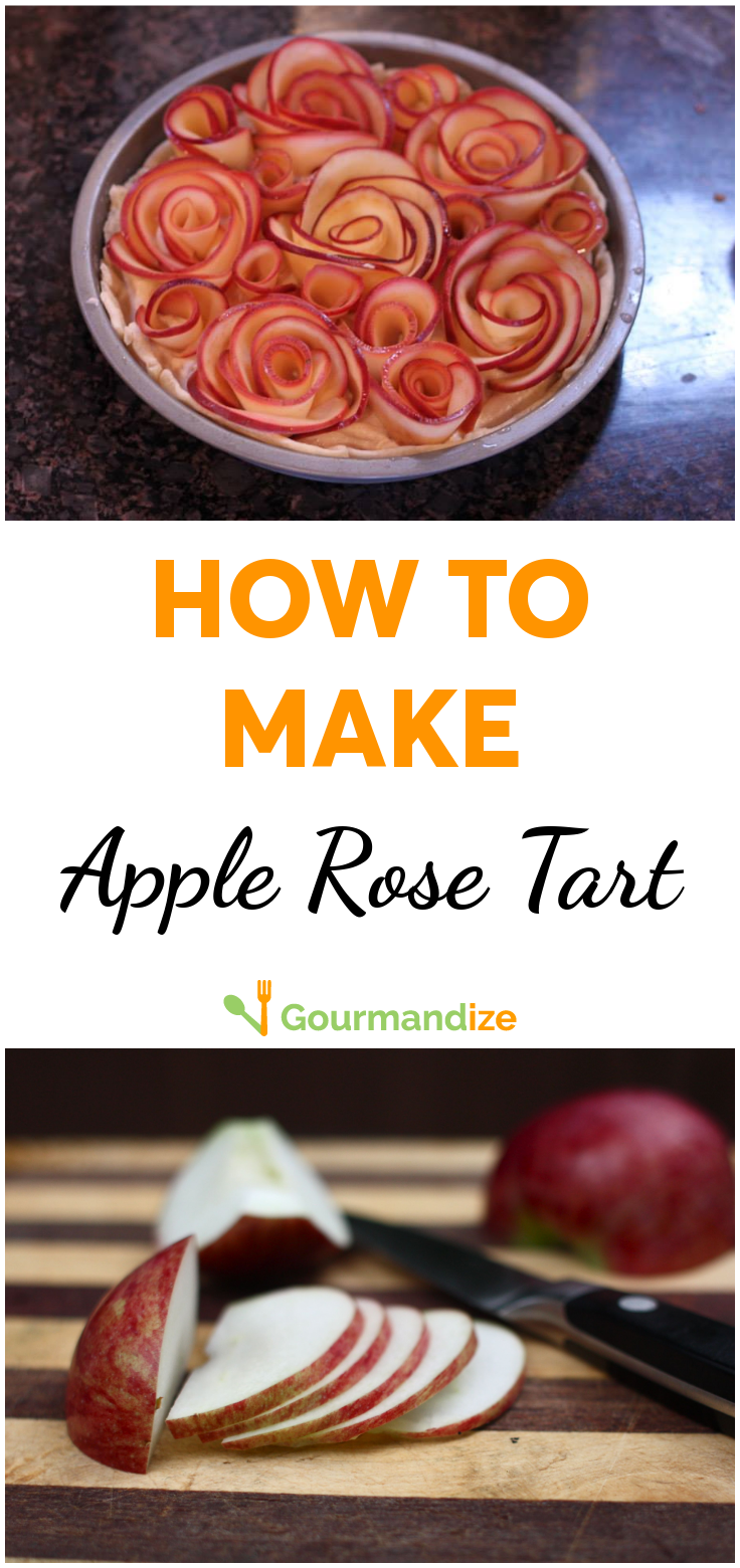 6. One at a time, arrange apple slices around the center of one rose until the rose is big enough.
