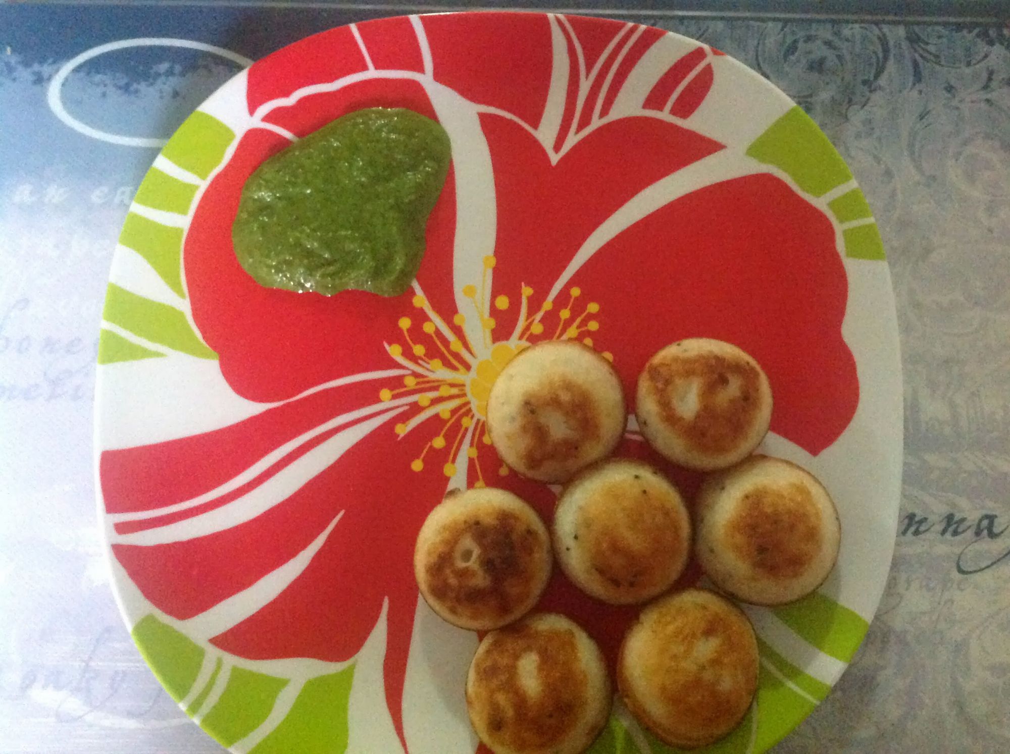 Heat the kuzhi paniyaram pan, add 1 tsp of oil in every hole.