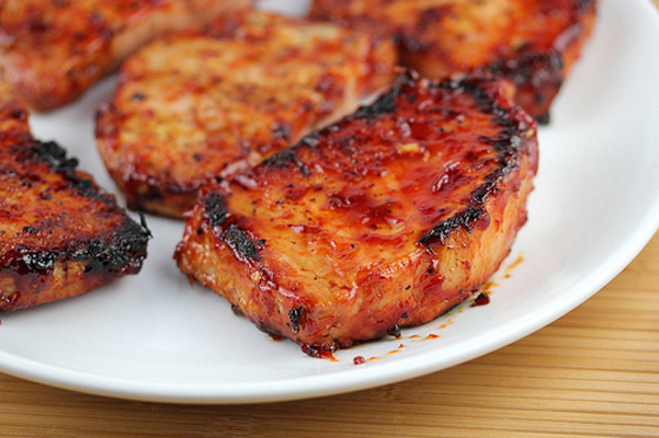 Sear meat on both sides, glaze on sauce, grill 7-9 min each side.