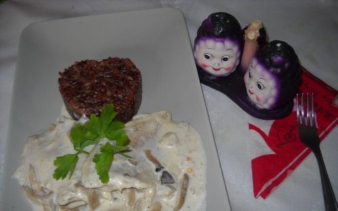 PESTE CU SOS DE CIUPERCI SI OREZ ROSU