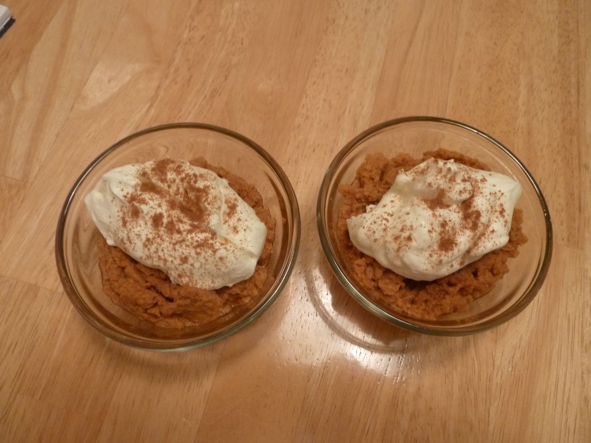 Serve in individual serving dishes with whipped cream and a sprinkle of cinnamon on top.