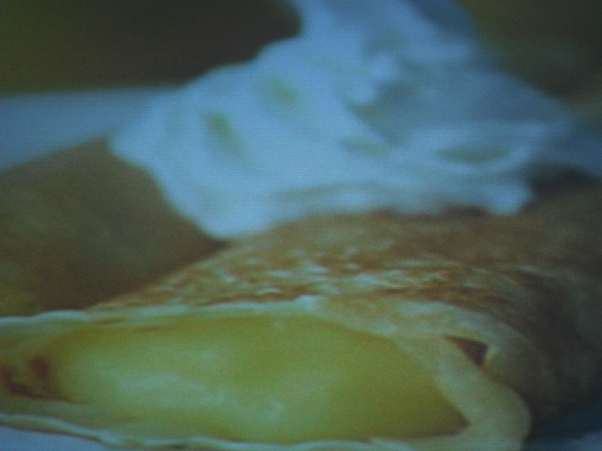 In an oiled pan, laddle batter into pan and spread around until very thin. Cook about 2 min on each side. Crepes will bubble when ready to flip.