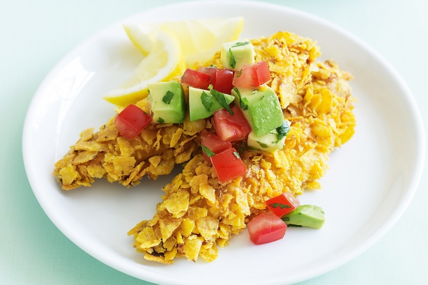 Coat chicken in egg mixture and roll in chips.