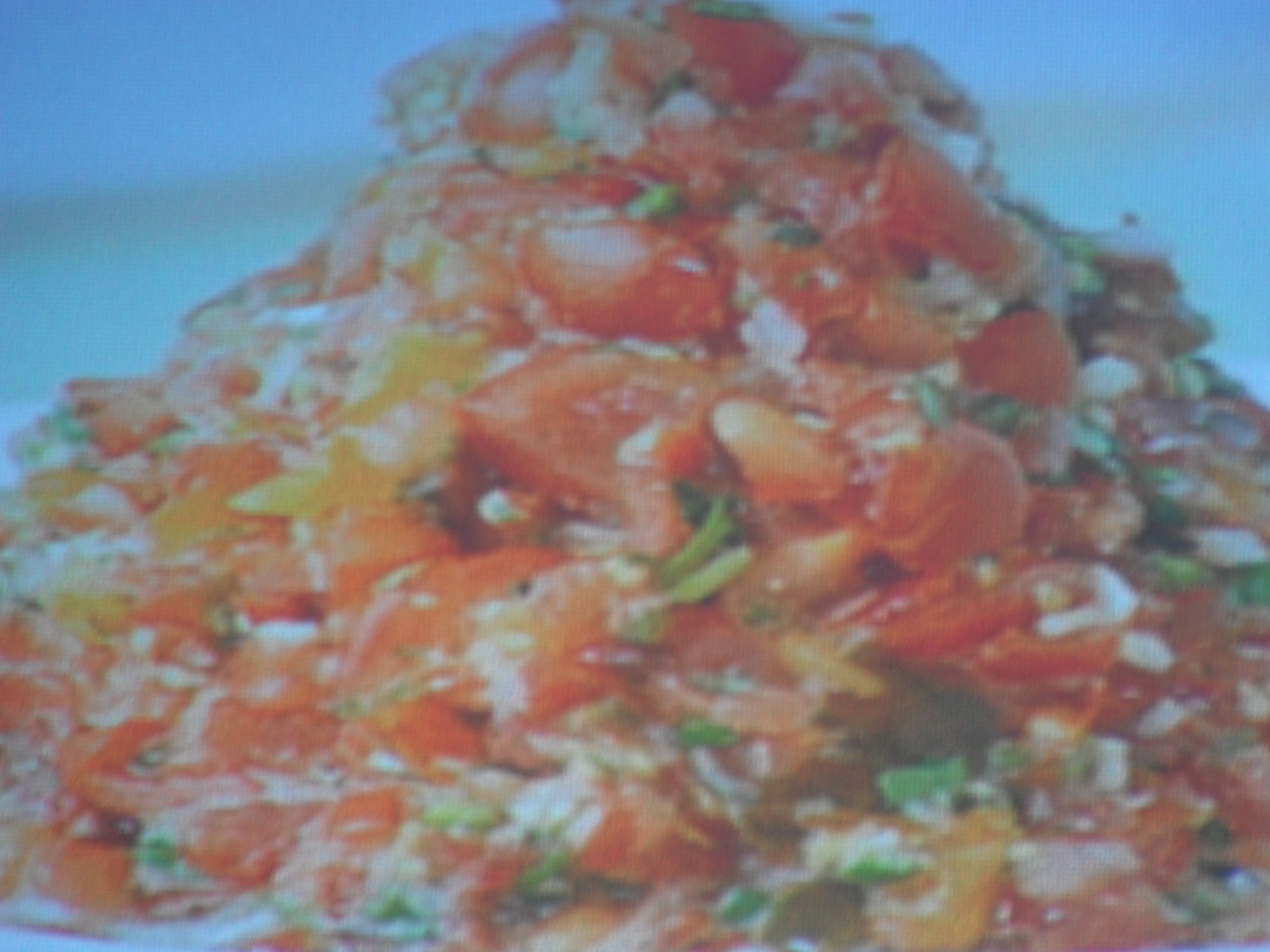 This salsa is sweet and spicy. It is excellent over savoury french toast or pancakes.