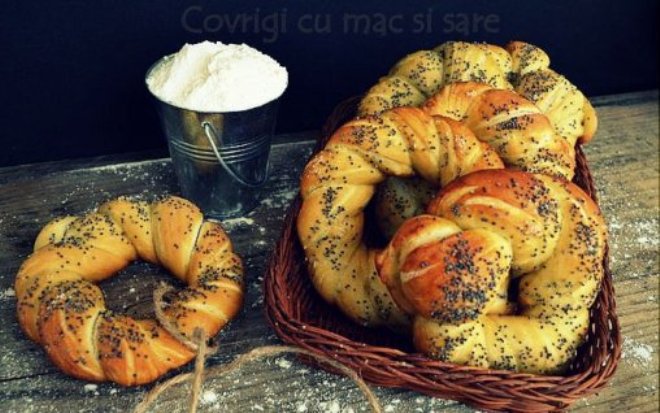 Cand incepe sa fiarba se adauga covrigii rand pe rand pentru 5-6 secunde fiecare. Se scot direct pe tava.