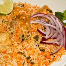 TAKE OUT A QUART SAUCE PAN AND ADD 4 CUPS OF RICE WITH6 CUPS OF WATER. ADD GREEN CHILI AND SHAKES OF CHILI POWDER. In another pan sauté the boneless chicken until it is brown and then add chicken to the rice and ingredients. Next take butter and yogurt and stir into the done rice. Make sure the rice is done completely. Put lid and let it simmer. Add vindaloo paste and cilantro and serve