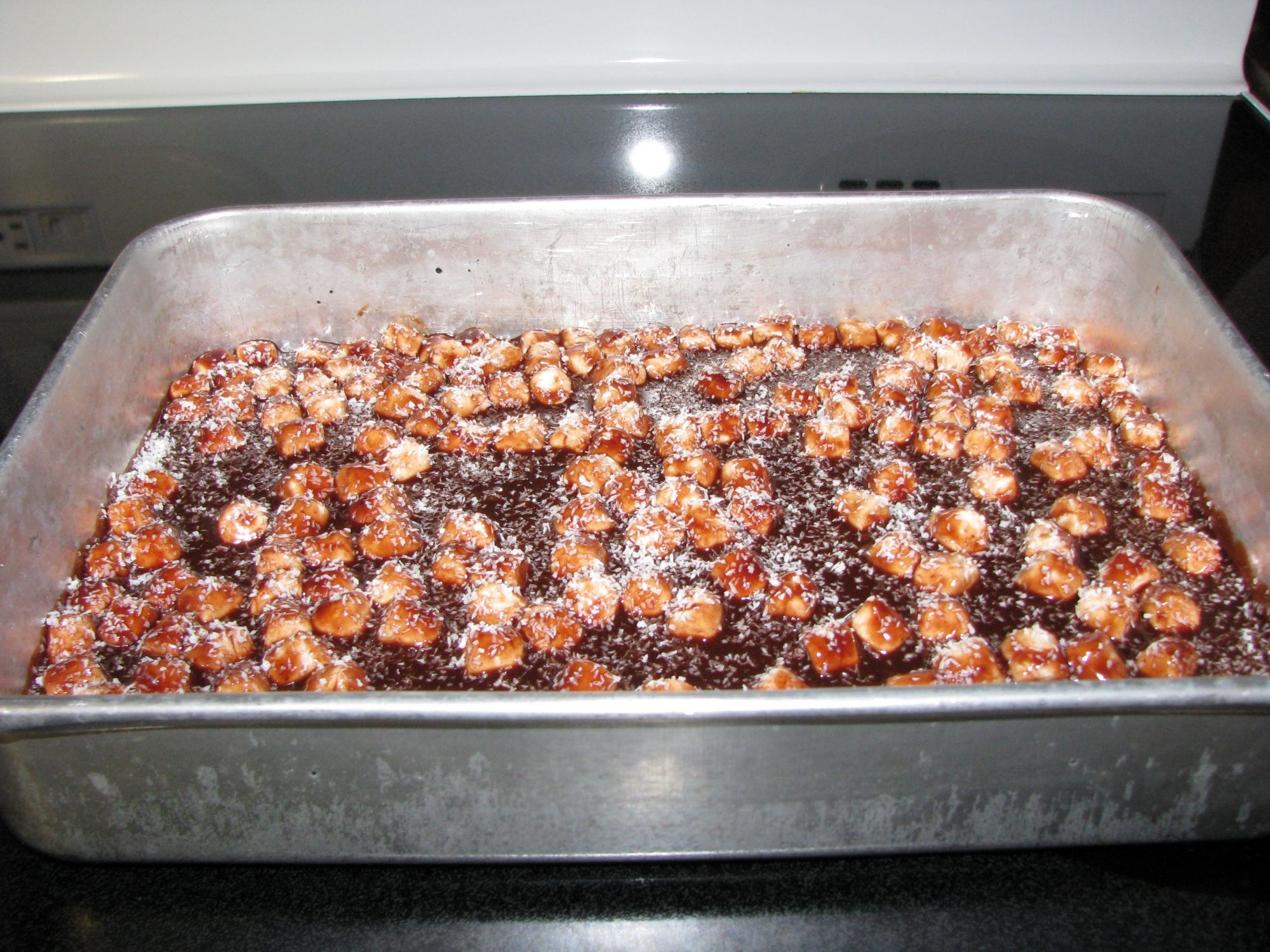 Layer a 9x13 pan with graham wafers. Pour chocolate mixture over top, sprinkle with coconut.