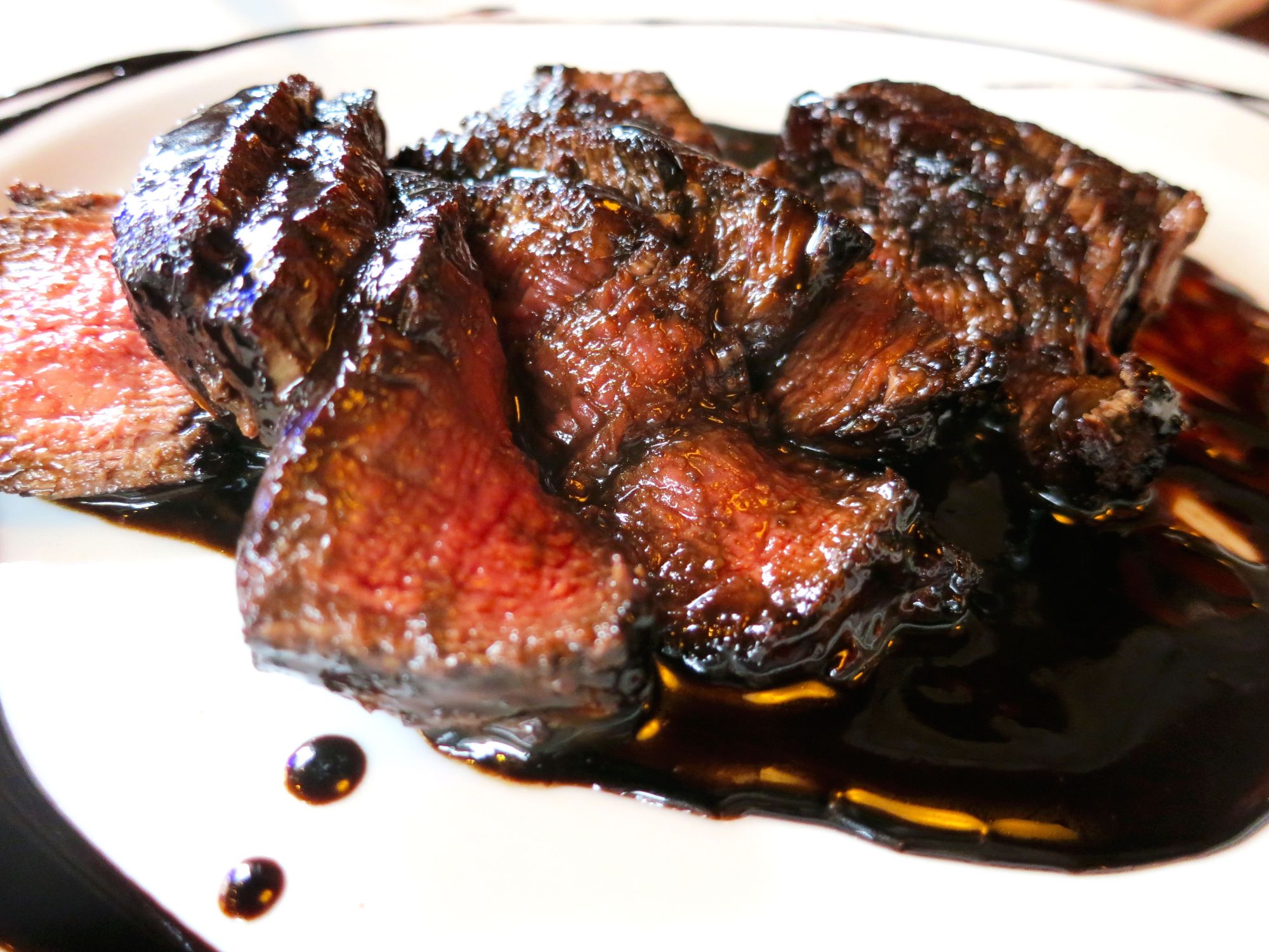 Remove steaks to two warmed plates, spoon one tablespoon of glaze over each, and serve immediately.