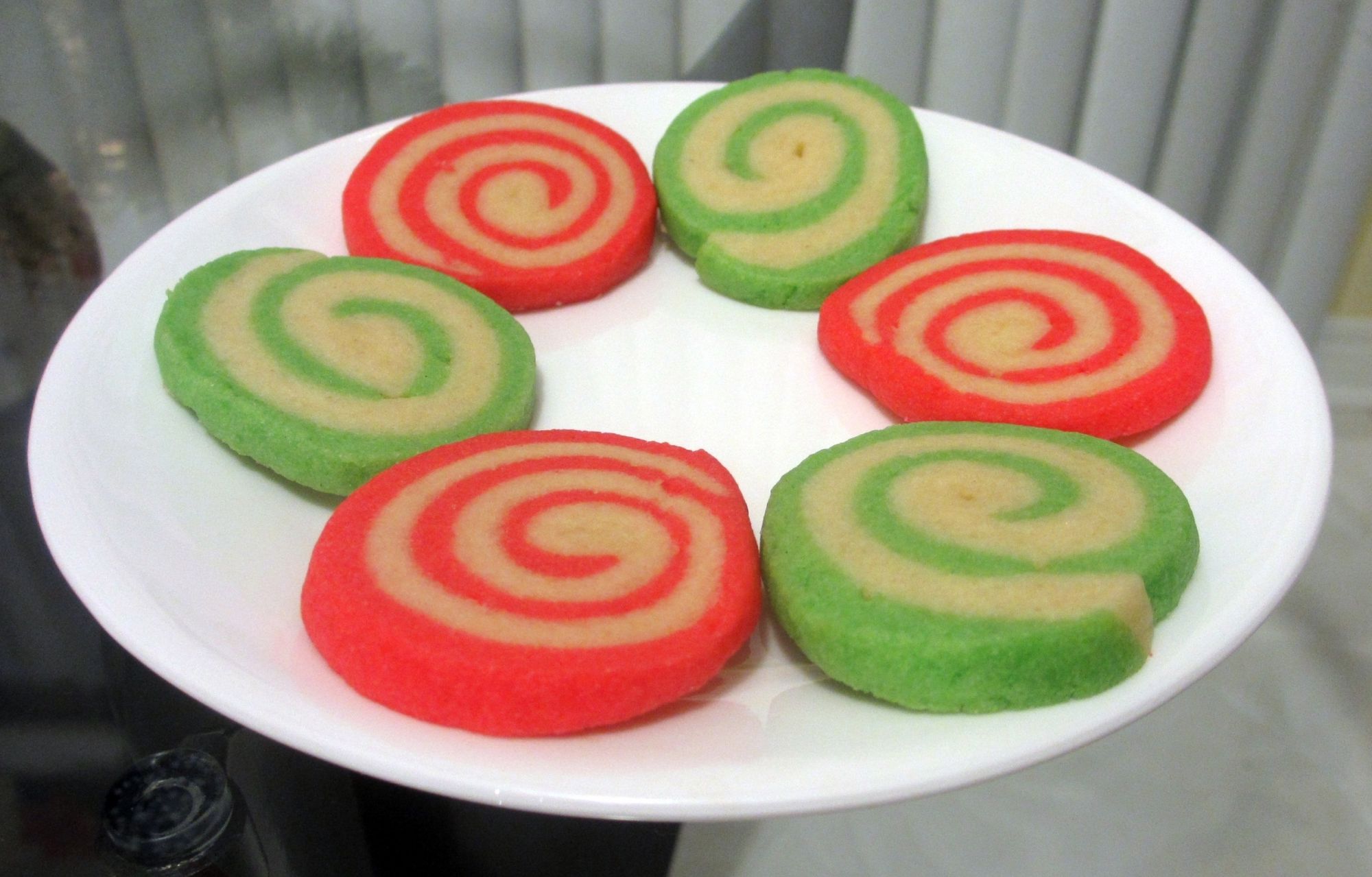 • Rather than putting the red and green dough in separate cookies, you can tint all of your dough and combine the red and green into the same pinwheel.