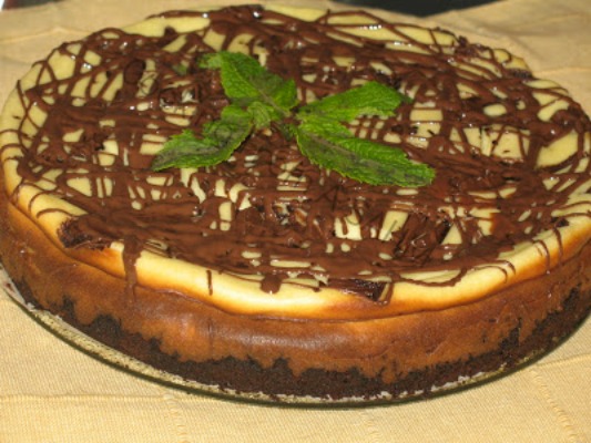 In a bowl mix the cream cheese till creamy, then add flour and sugar. Mix well, add eggs, sour cream,vanilla and mint extract. Pour the filling in the spring form pan. Stack Andes mints about 8 or so of them. And slice them. Sprinkle on top of the cheesecake.. Bake at 350 for 55 minutes. Take it out and put it on a cooling rack. Wait 20 minutes then loosen it from the spring form pan. In the double boiler, or microwave melt the rest of your Andes mints. When its melted let it cool for a second. Then pour it in a zip lock bag and cut the small end off. Drizzle over the whole cheesecake. Put it in the fridge and let it cool. Eat and enjoy