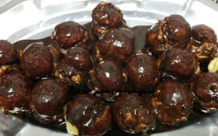 Se formeaza mici bile din aluat (cu mana unsa cu ulei) si se aseaza pe o tava acoperita cu hartie de copt, cu distanta intre ele.