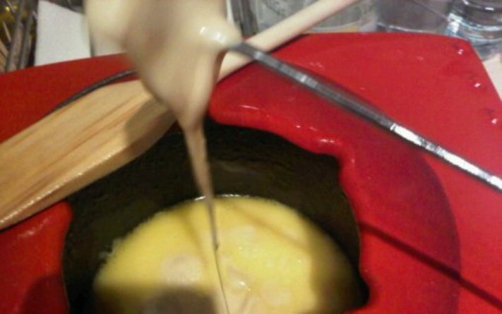 Dupa ce s-a topit, mai lasam inca 5 min ptr a se evapora surplusul de lichid(grasime), apoi micsoram focul (in comert se gasesc vase special ptr acest preparat tocmai ptr a ramane branza calda, topita) si servim cu bucatele de paine infipte in furculite intingand in branza topita.