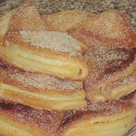 Each circle dip one side in sugar, sugared folded in half inside out , resulting in a semi-circle again dipped sugar and candied again folded inside out , one side of a triangle dip in sugar.