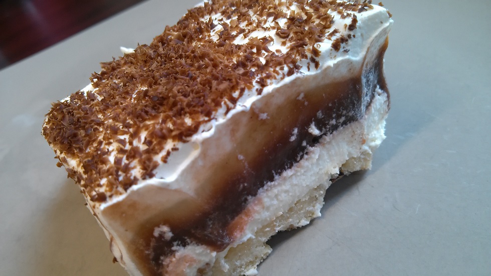 Spread cool whip evenly over chocolate pudding layer. Sprinkle shaved chocolate over the top. Chill until set and serve.