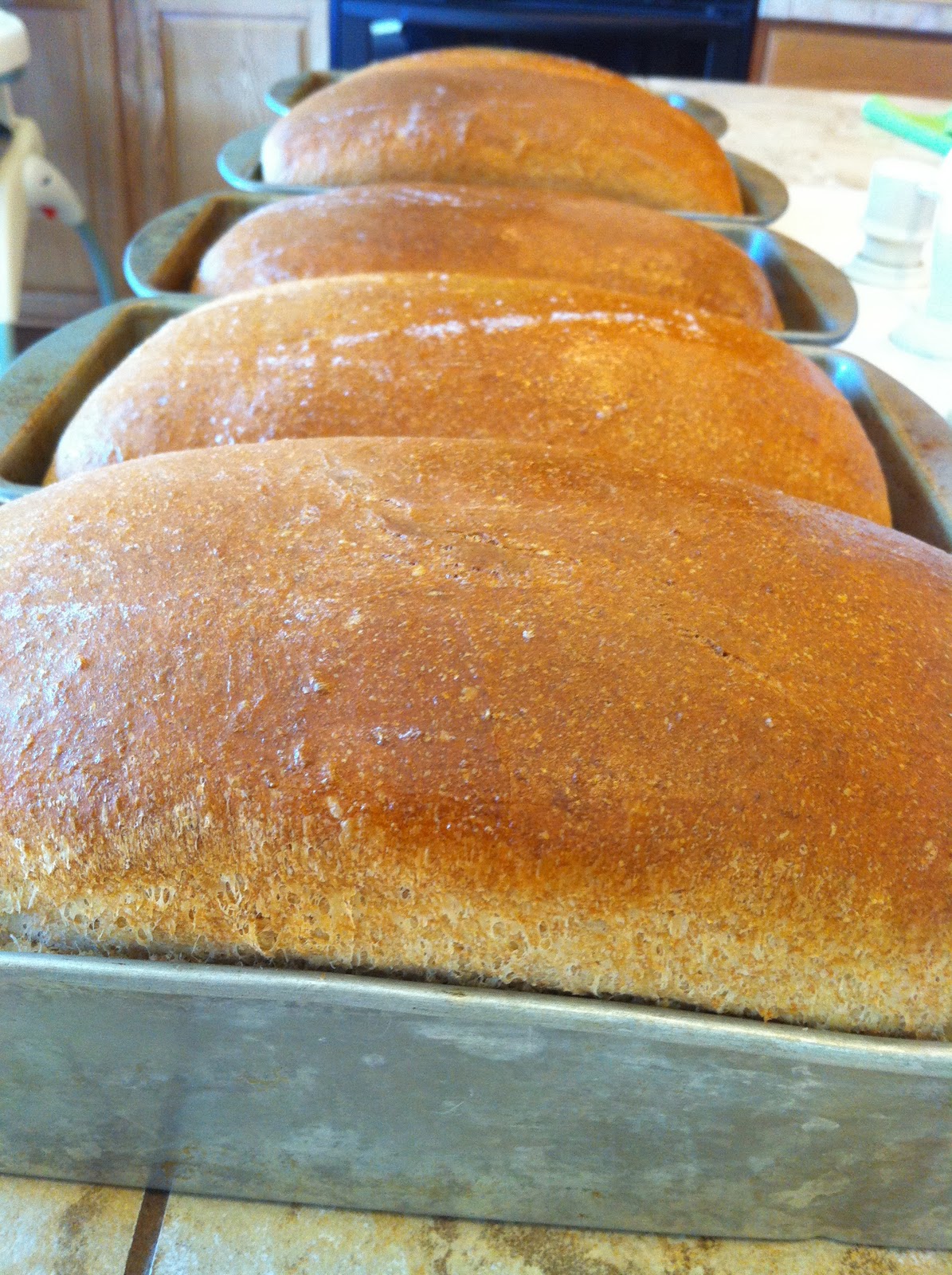 Cross the top with your fingers and punch the ball of dough once. Separate and shape,place into greased bread pans or into buns or other shape of your choice. Cover and let rise for 1 hour.