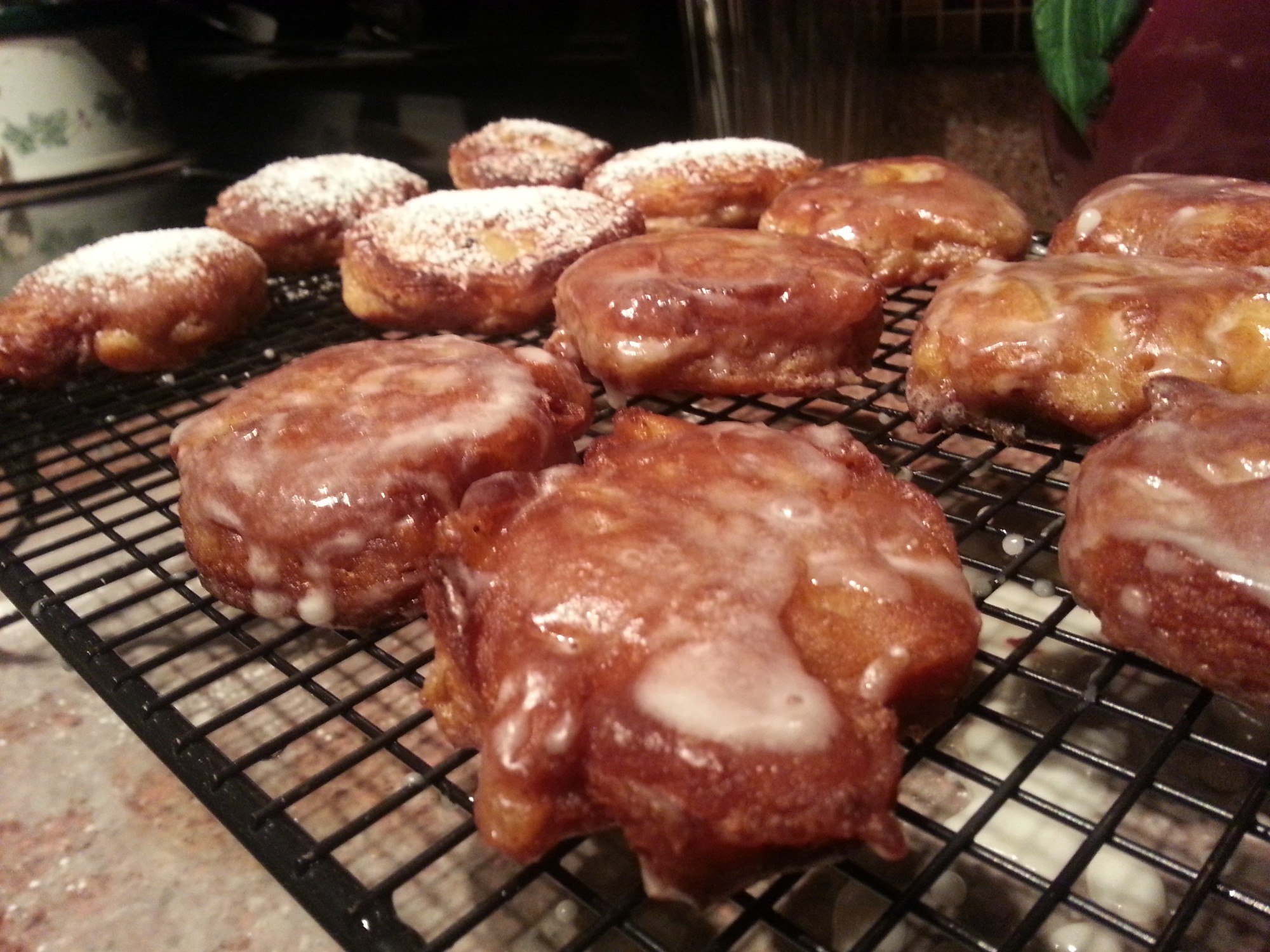 In a small bowl combine powdered sugar and milk. Mix well. Drizzle over cooled fritters. Flip fritters to glaze both sides.