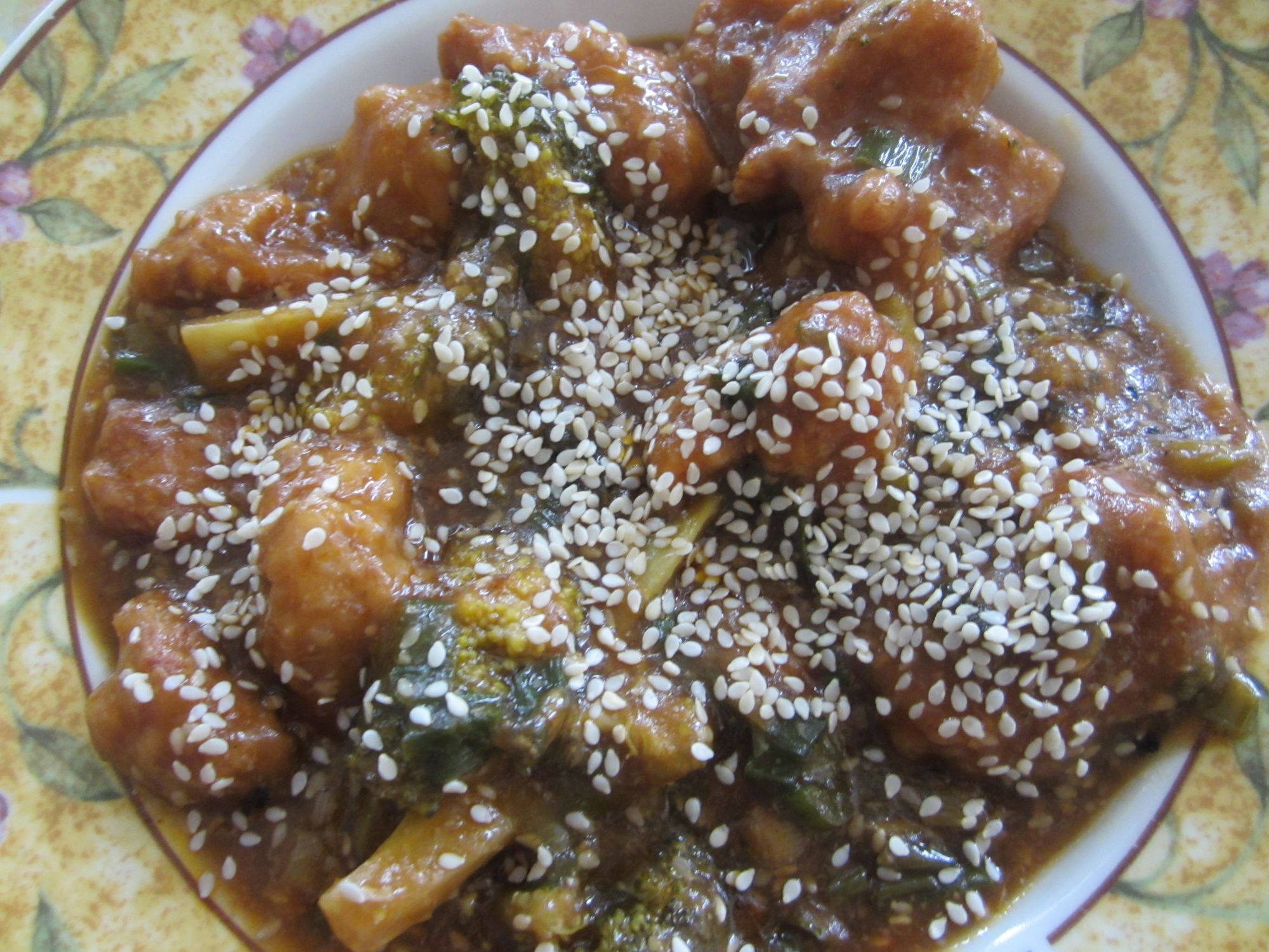 Heat oil in a wok. Fry ginger & garlic paste. Add green oniions. Stir in the sauce mixture. let it until it becomes thick. Add in the fried chicken and close the flame.