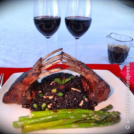 Lovers Balsamic Glazed Rack of Lamb with Forbidden Rice and Grilled Asparagus