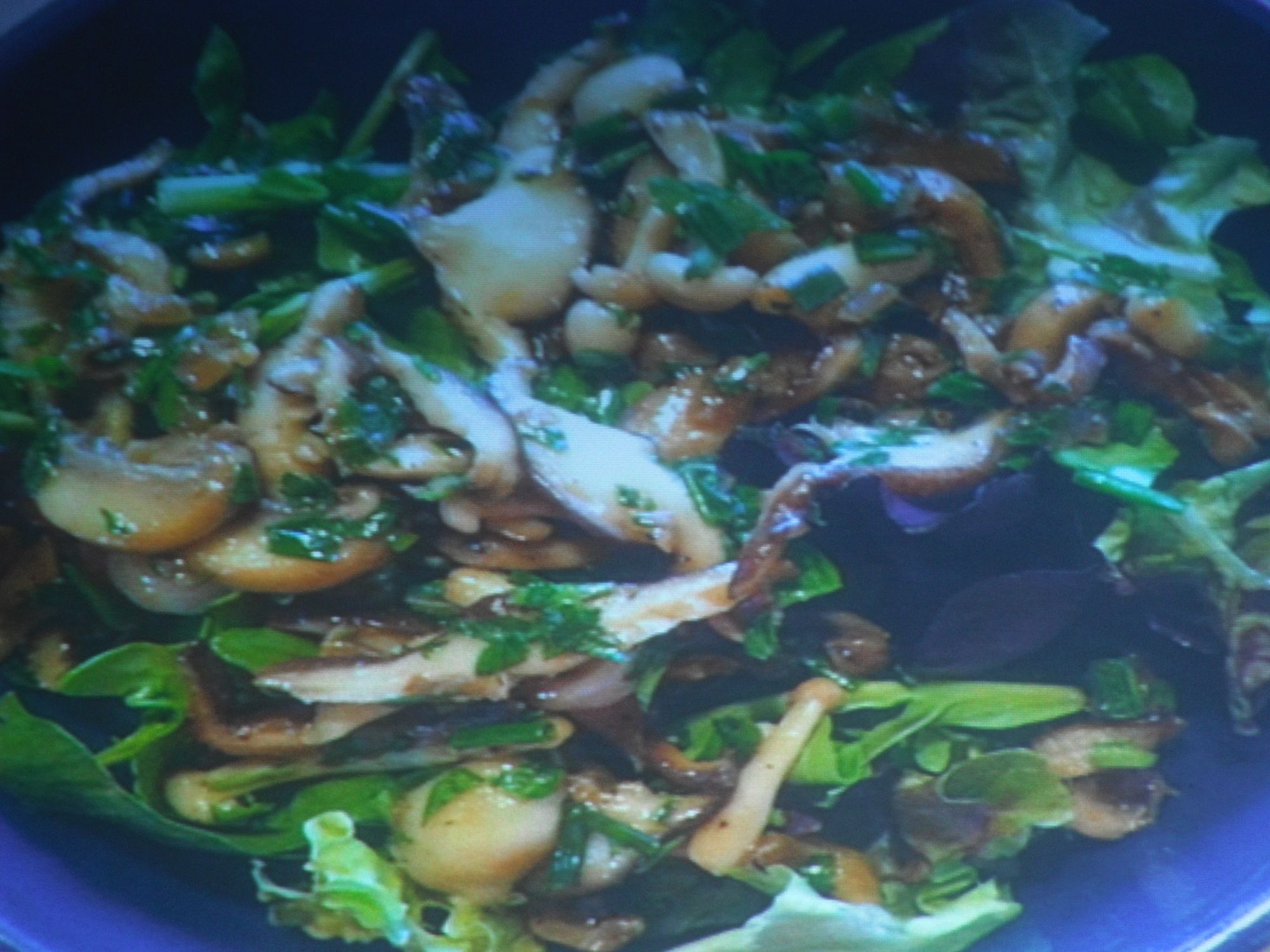 Saute mushrooms, onions, chik'n, and pepper in vinegar, oil, sugar, and lemon juice, 15 minutes.