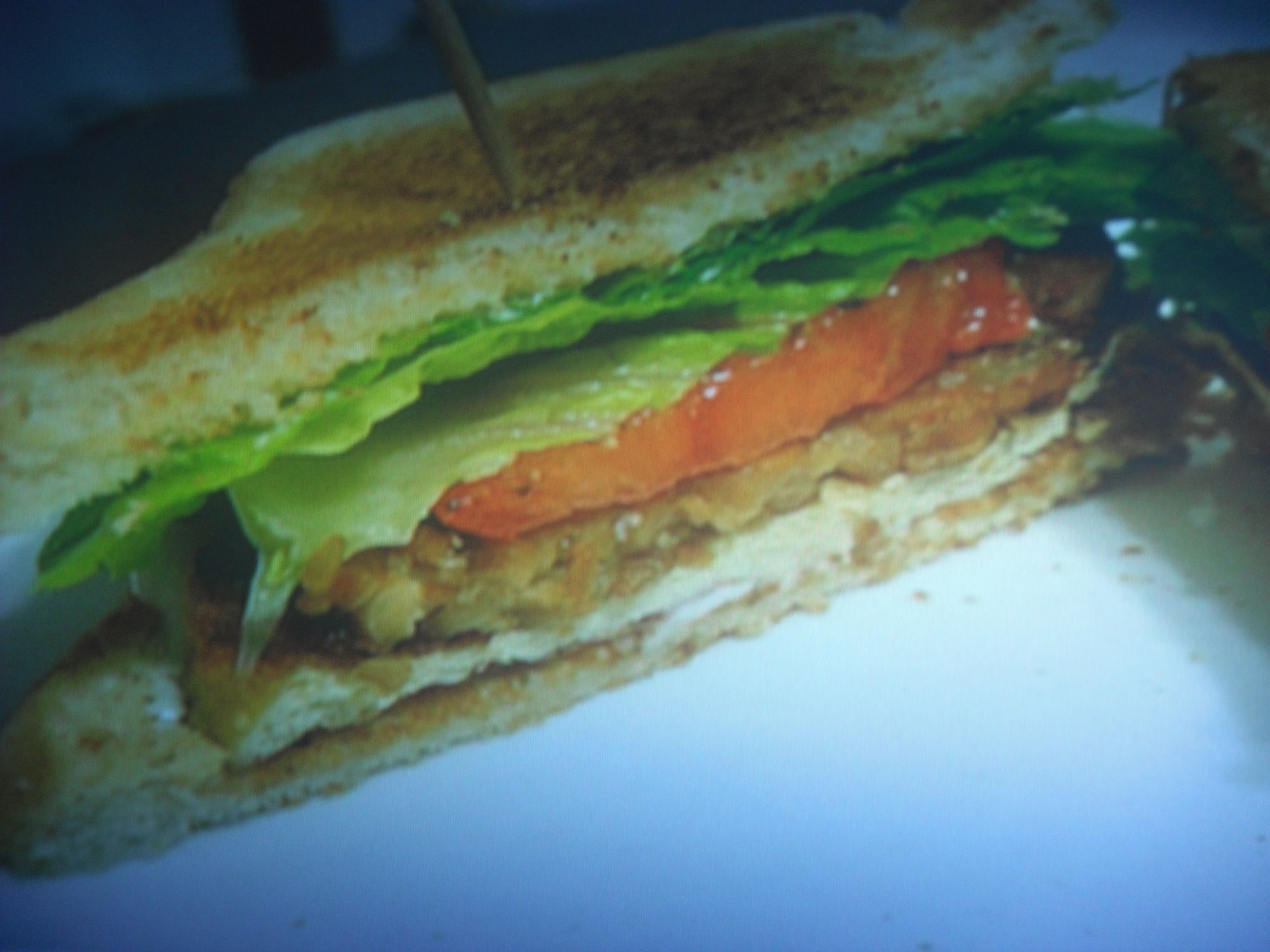 This is a wonderful alternative to the meat version. Carnivores won't evenmiss the meat. The sandwich has delicious smoky maple tofu bacon on it.