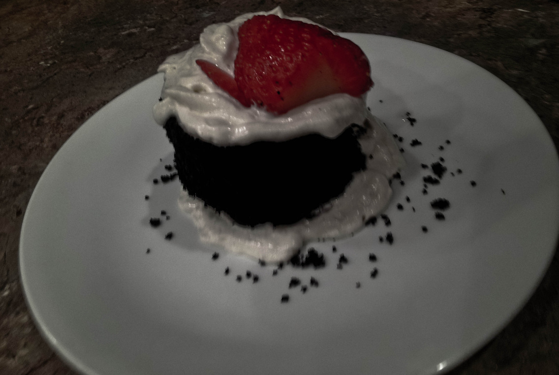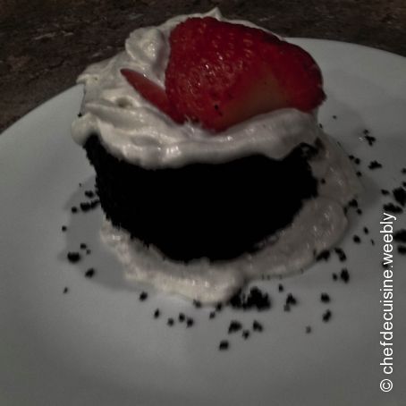Place with whipped cream and strawberries