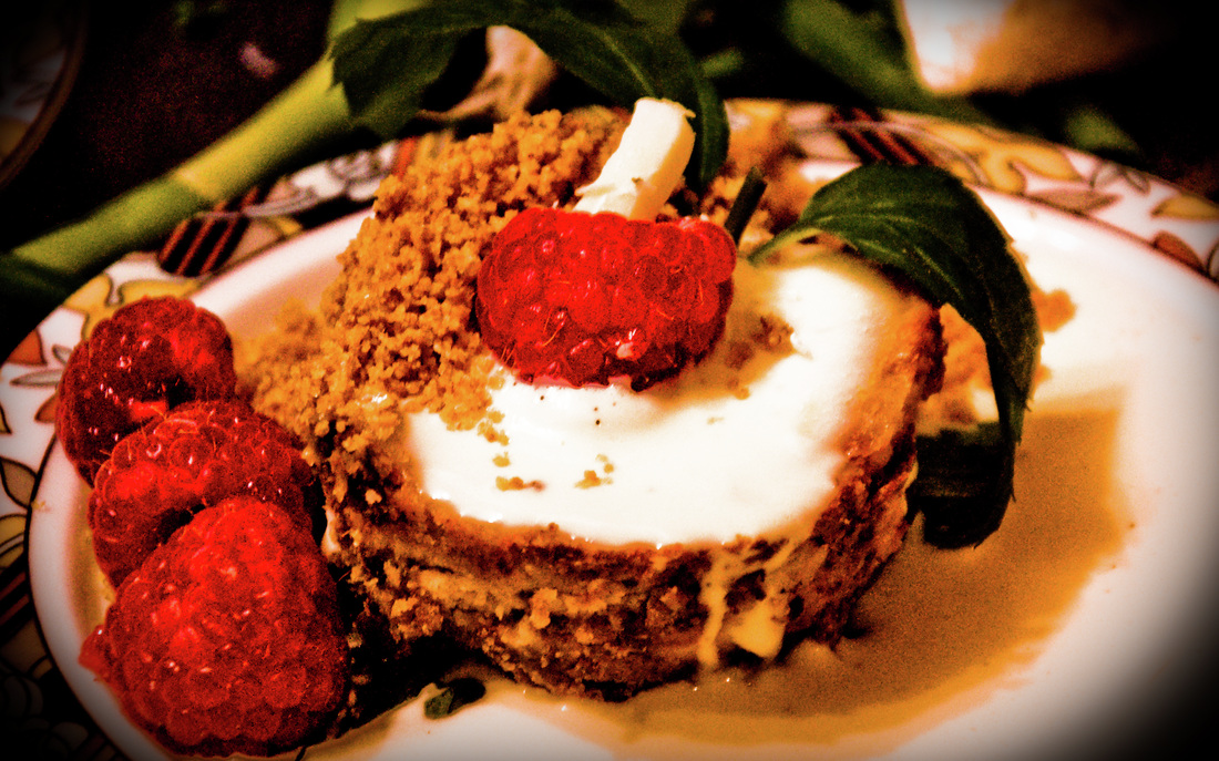 White chocolate shreds, raspberries, mint leaves and other sauces may be added for garnish